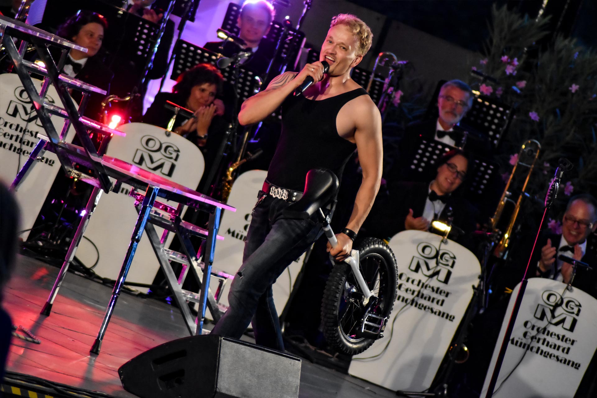 - Auf Wunsch bringe ich eine eigene Anlage mit, die für eine Beschallung von bis zu 200 Personen geeignet ist.