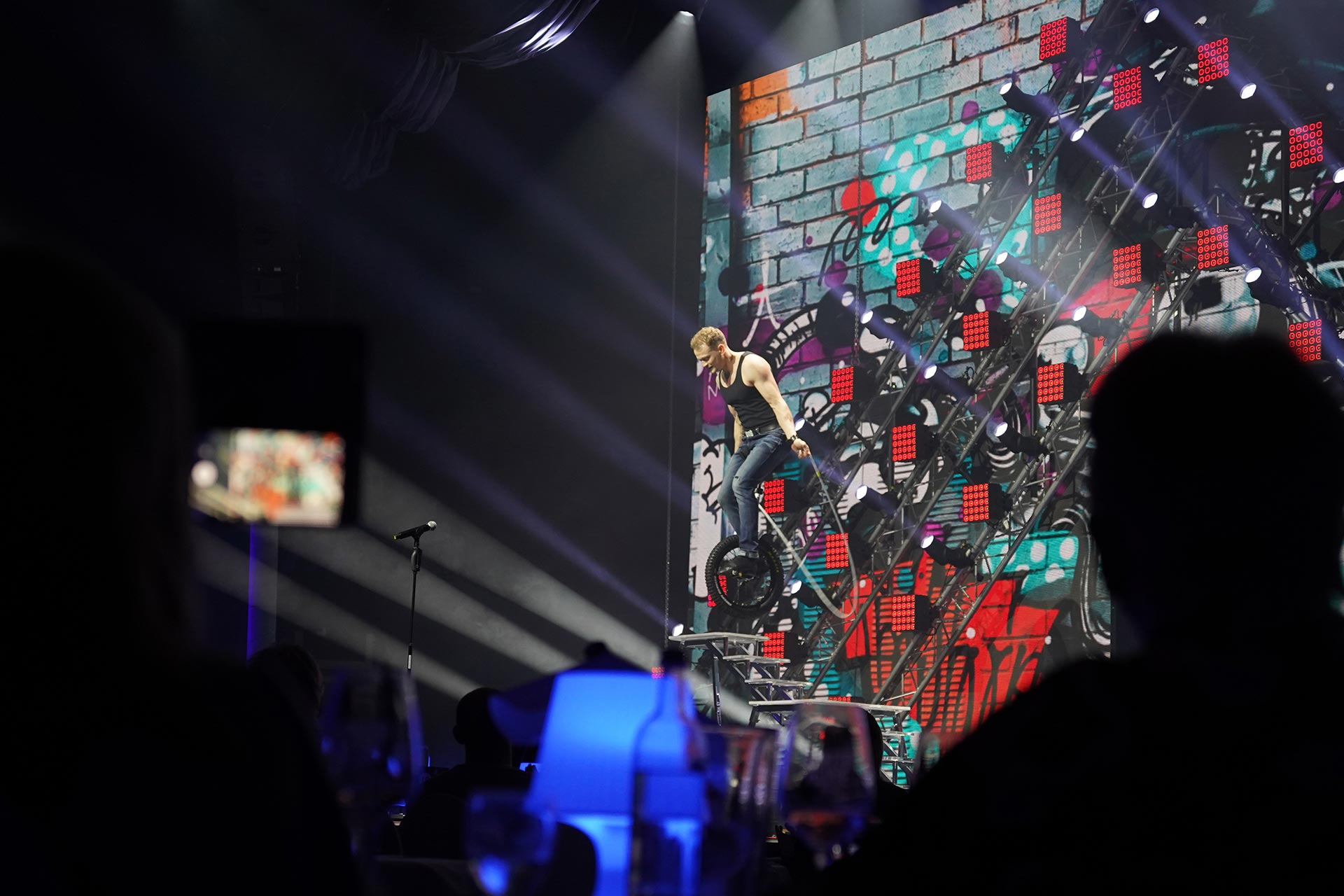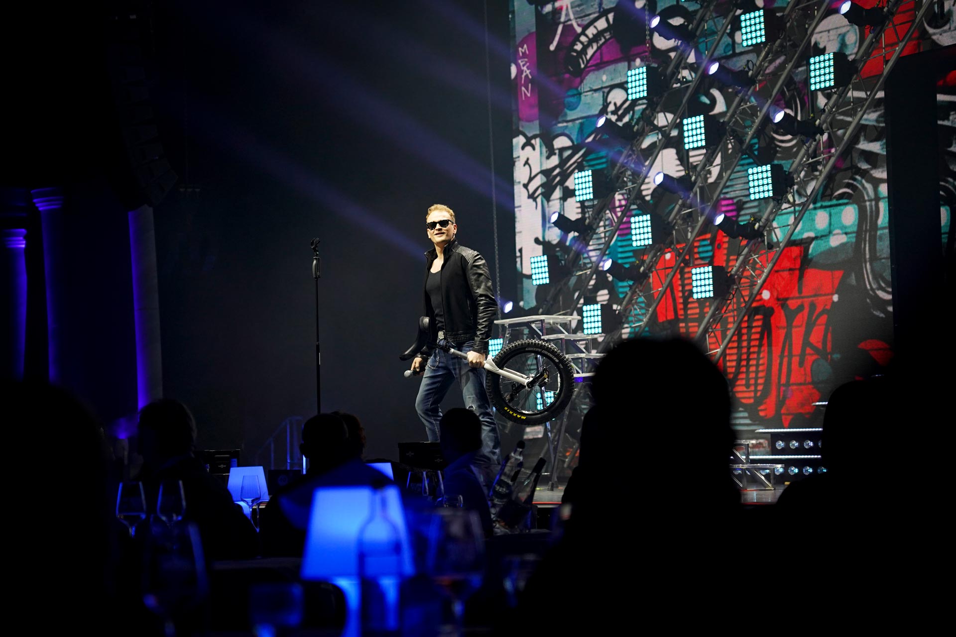 - Die ausgeleuchtete Bühne benötigt eine Bühnenfläche von mindestens 6×4 Metern mit 3,5 Metern Höhe.